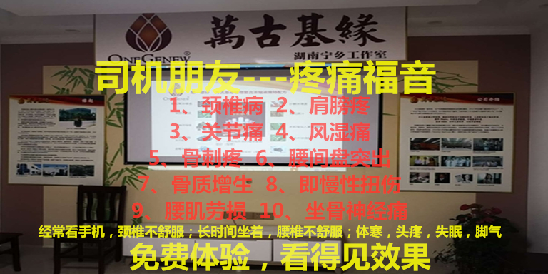服务说明:司机朋友亚健康的福音:肩颈炎、腰酸背痛、胃病、痔疮、前列腺炎等!保健理疗免费体验三次!